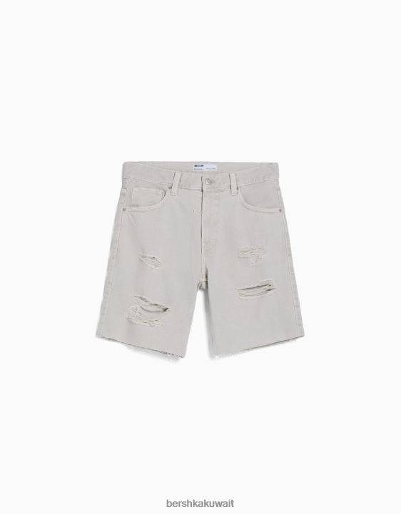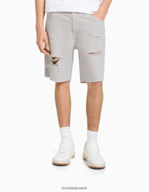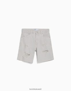 Bershka رجال شورت برمودا جينز ممزق ملون رمادي 804X3309 ملابس