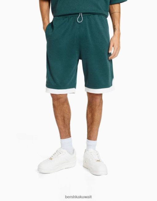 Bershka رجال شورت برمودا شبكي أخضر 804X3298 ملابس