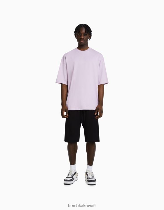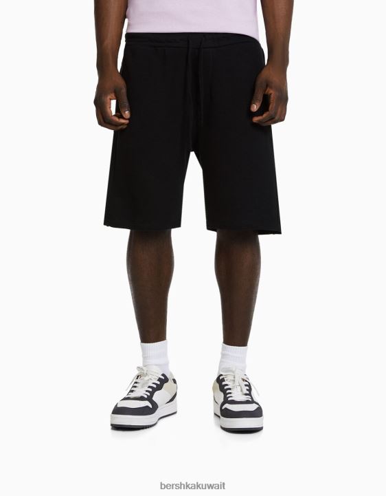 Bershka رجال شورت برمودا قطيفة أساسي أسود 804X3315 ملابس