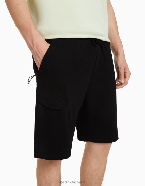 Bershka رجال شورت برمودا للشحن القطيفة أسود 804X3329 ملابس