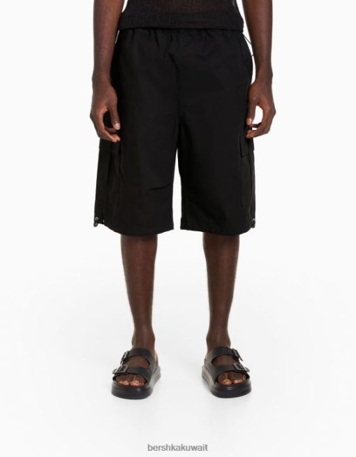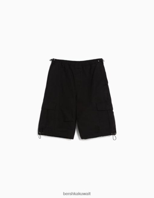 Bershka رجال شورت برمودا من البوبلين المظلي أسود 804X3439 ملابس