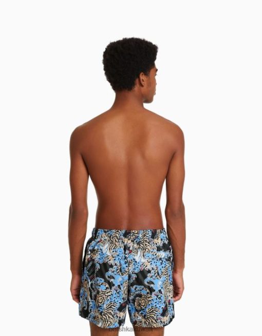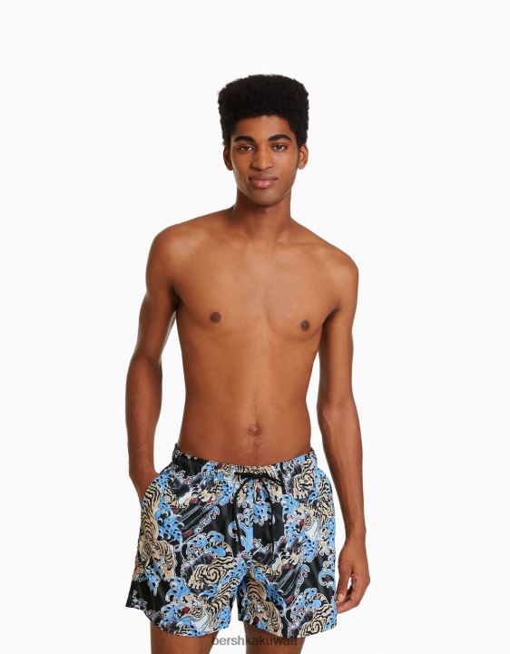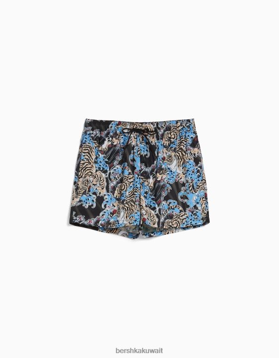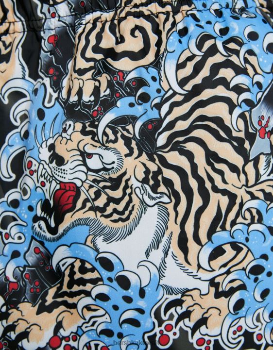 Bershka رجال شورت بطبعة نمر أسود 804X3406 ملابس