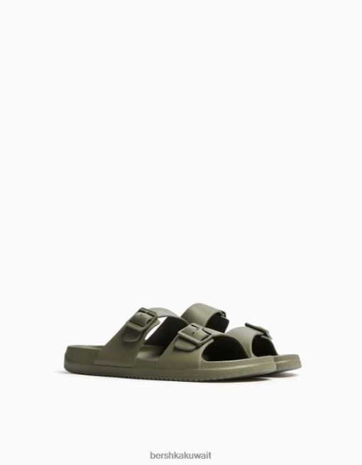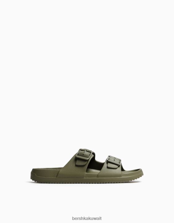 Bershka رجال صنادل مطاطية مع أبازيم الكاكي 804X3561 الأحذية