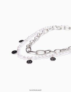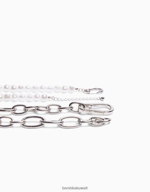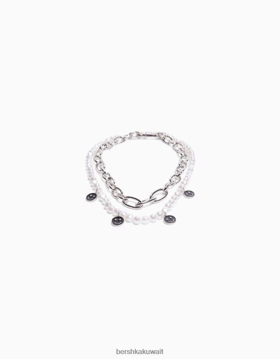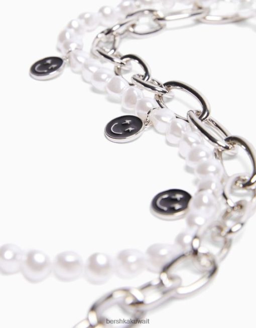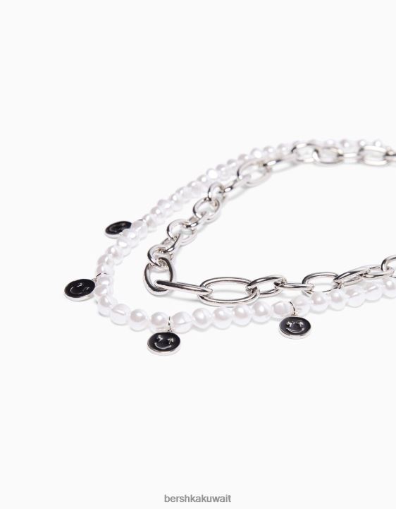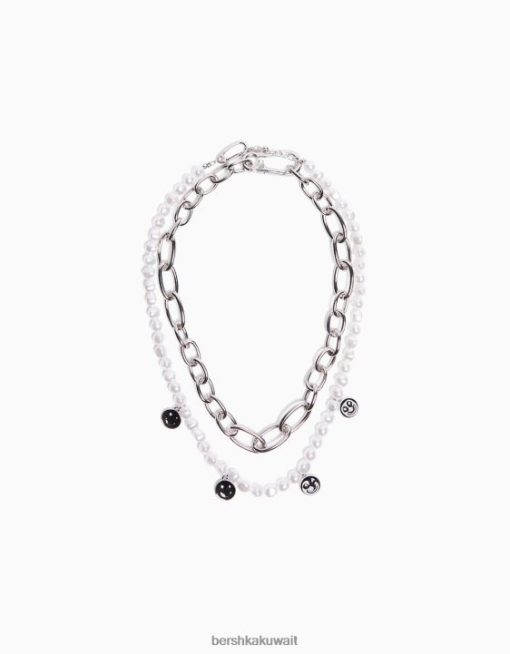 Bershka رجال طقم 2 عقد من اللؤلؤ الصناعي وسلسلة فضة 804X3681 مُكَمِّلات