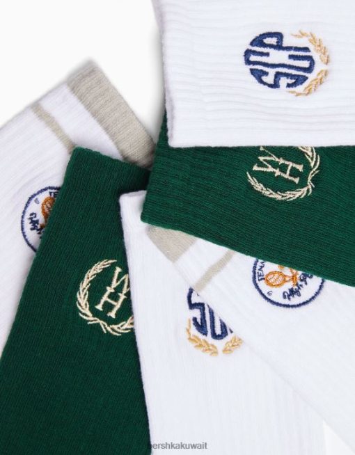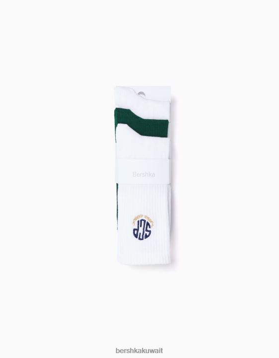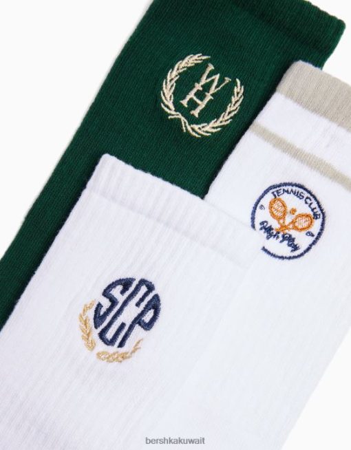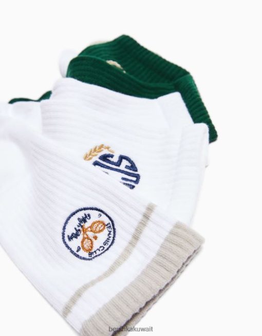 Bershka رجال عبوة من 3 أزواج من الجوارب المطرزة أبيض 804X3419 مُكَمِّلات