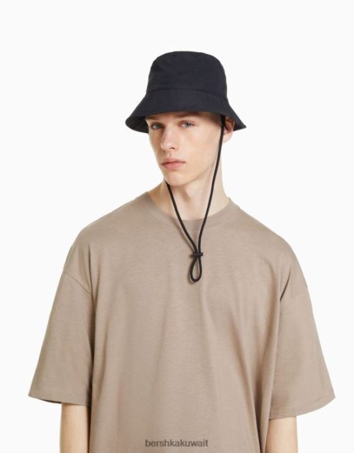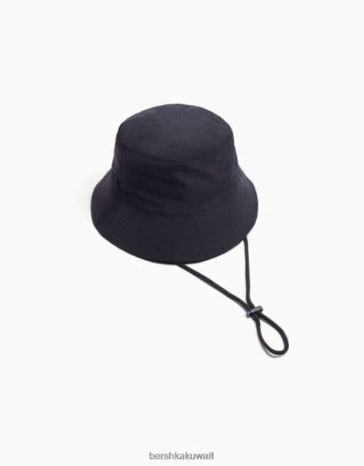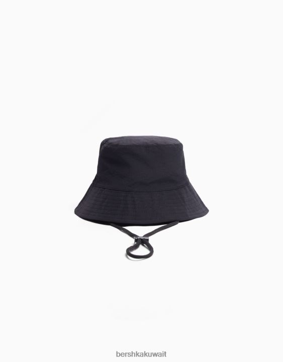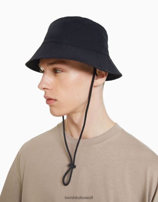 Bershka رجال قبعة المطر النايلون مع الأشرطة أسود 804X3610 مُكَمِّلات