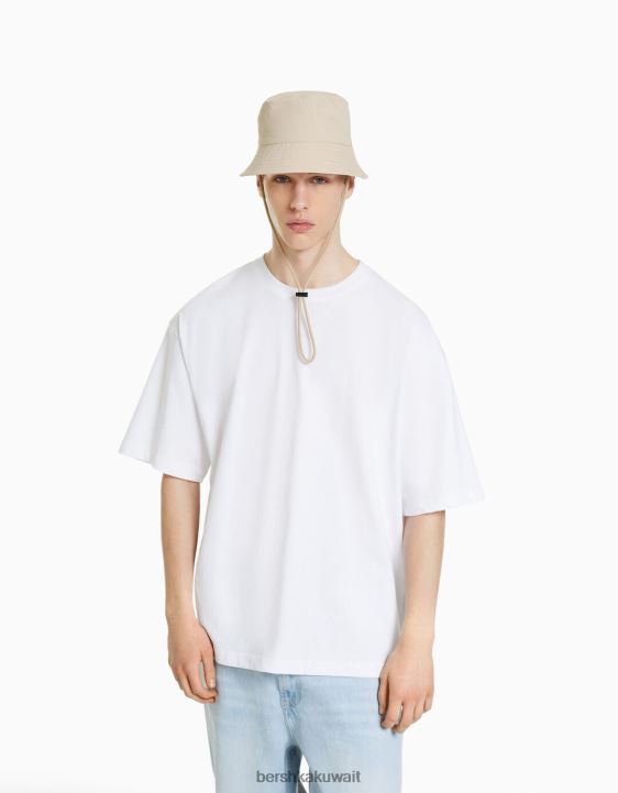 Bershka رجال قبعة المطر النايلون مع الأشرطة أبيض 804X3611 مُكَمِّلات
