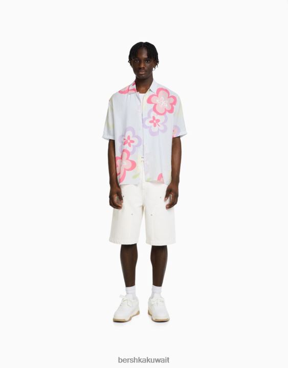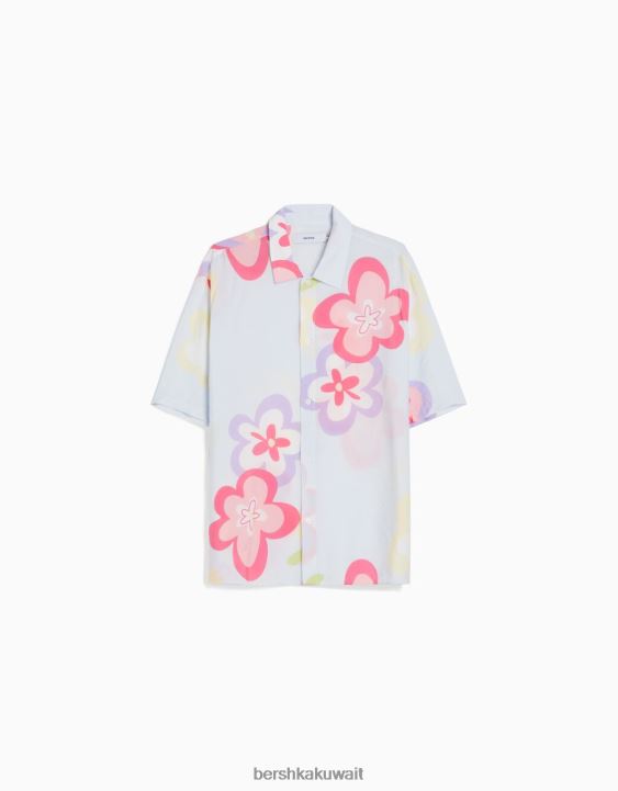 Bershka رجال قميص بأكمام قصيرة بطبعة زهور أزرق فاتح 804X2867 ملابس