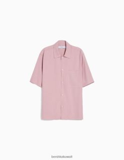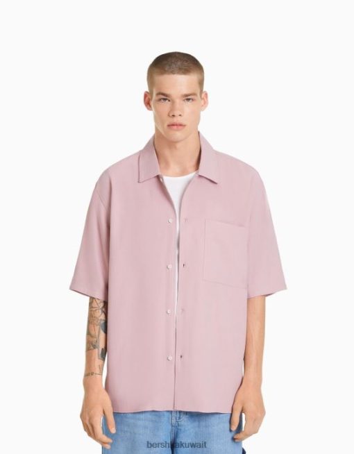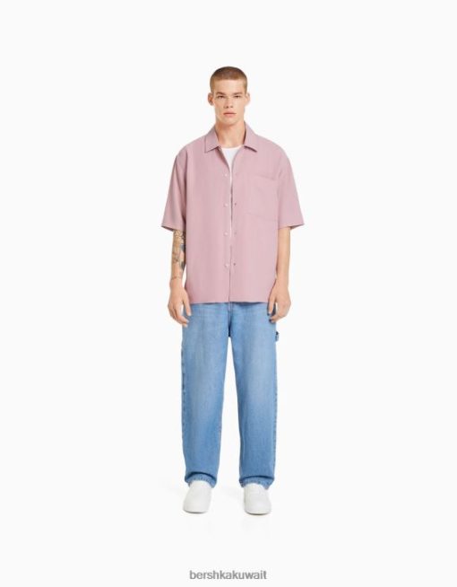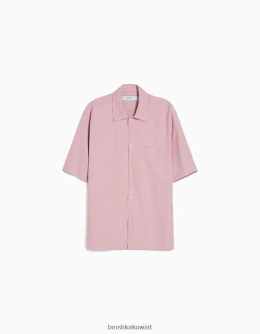 Bershka رجال قميص بأكمام قصيرة مريحة لون القرنفل 804X2908 ملابس