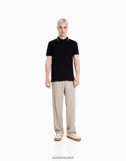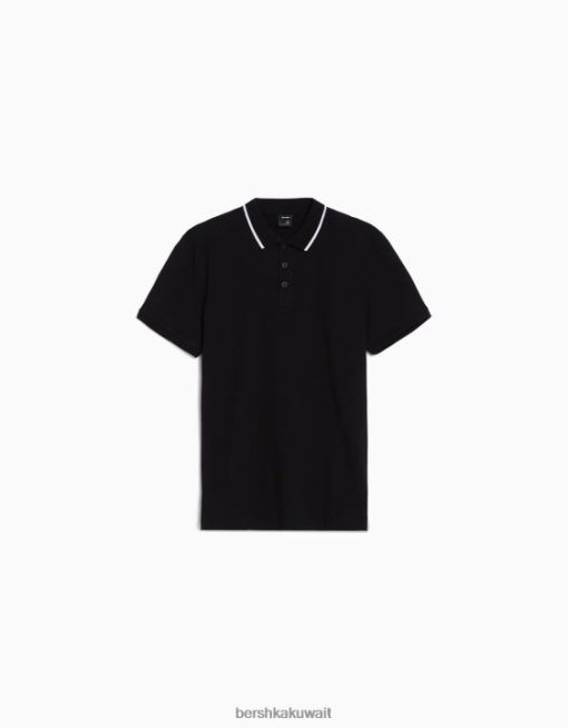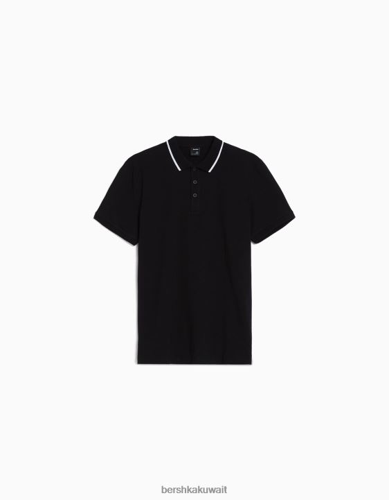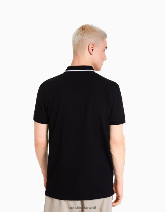 Bershka رجال قميص بولو مخطط بأكمام قصيرة أسود 804X2678 ملابس