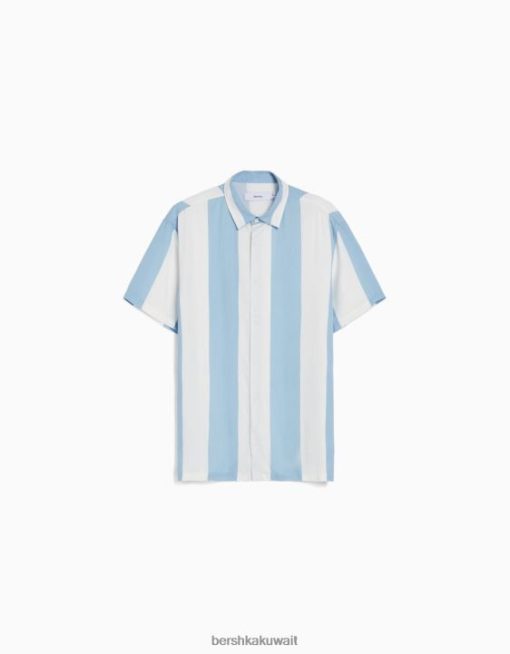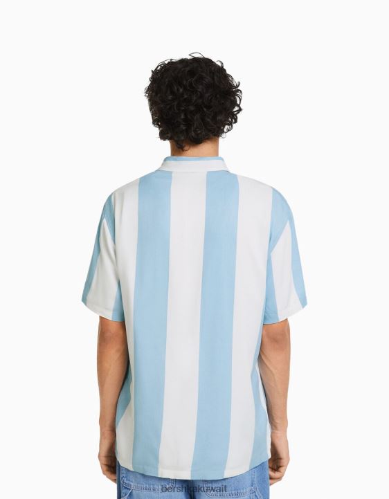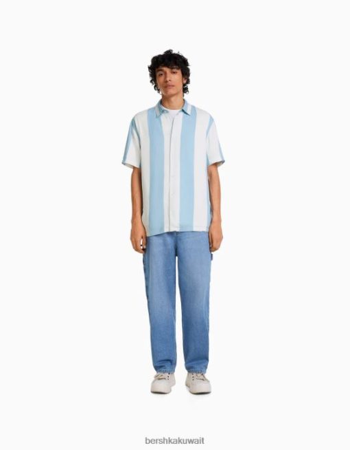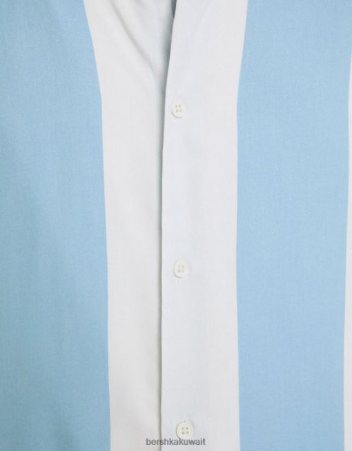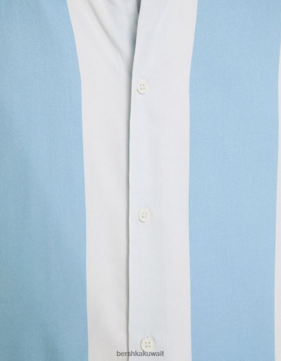 Bershka رجال قميص طويل الأكمام مخطط أزرق فاتح 804X2929 ملابس