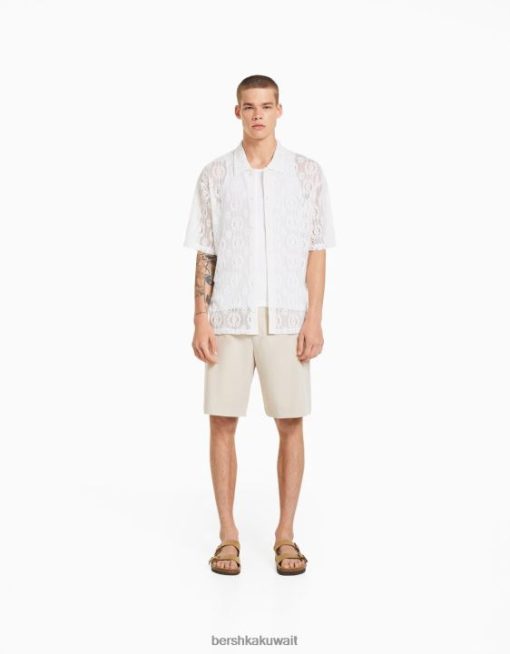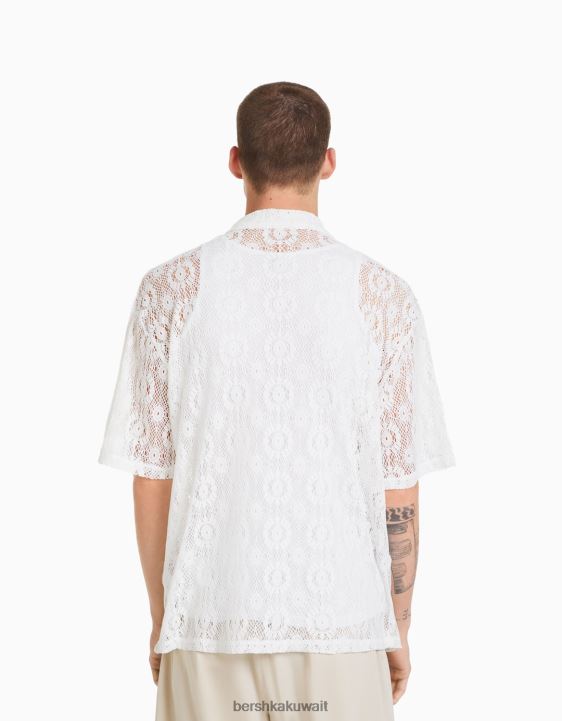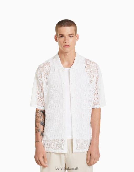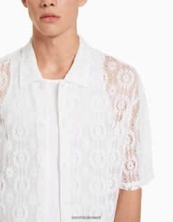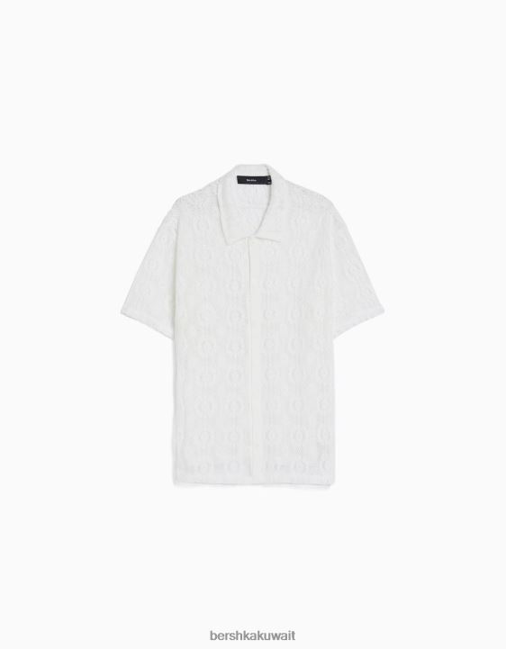 Bershka رجال قميص كروشيه بأكمام قصيرة أبيض 804X2877 ملابس