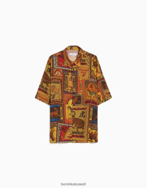 Bershka رجال قميص مطبوع بأكمام قصيرة البرتقالي 804X2859 ملابس