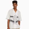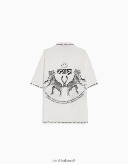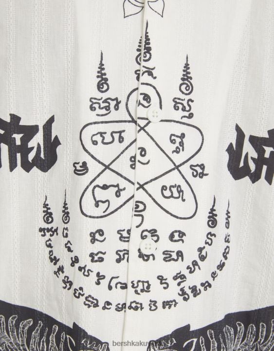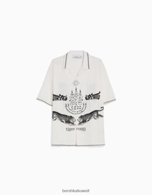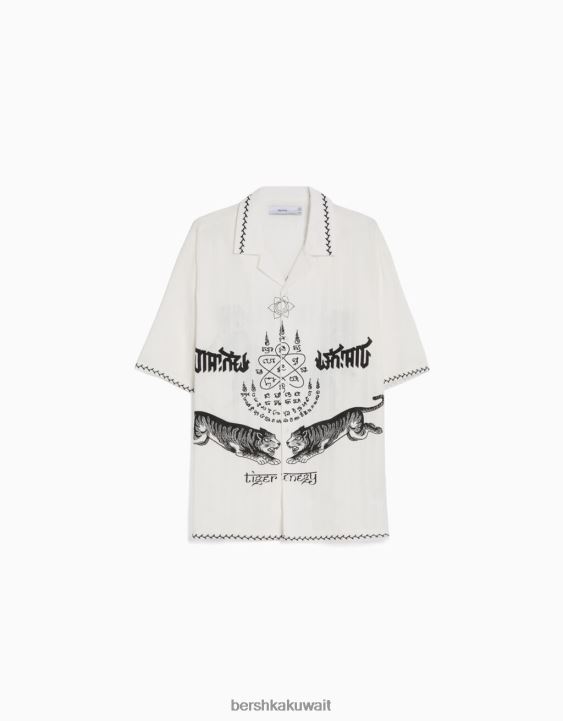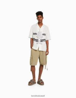 Bershka رجال قميص مطبوع بأكمام قصيرة كريم 804X2863 ملابس