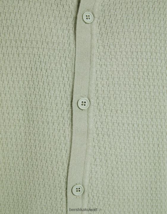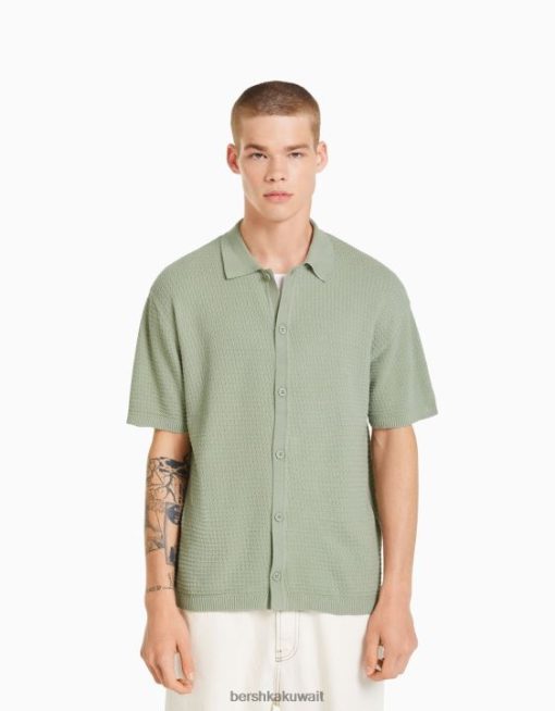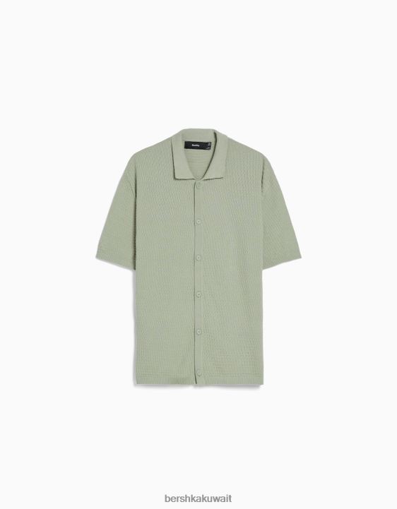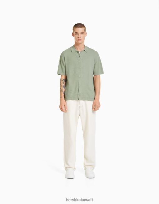 Bershka رجال قميص منسوج بأكمام قصيرة أخضر 804X2901 ملابس