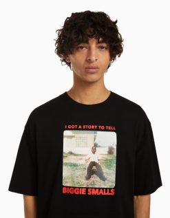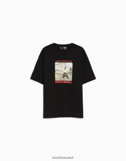 Bershka رجال كبير سيئة السمعة. تي شيرت مطبوع بأكمام قصيرة أسود 804X2813 ملابس