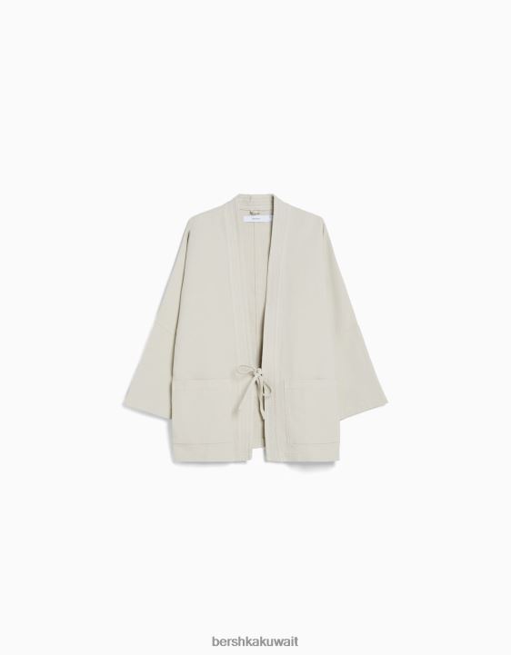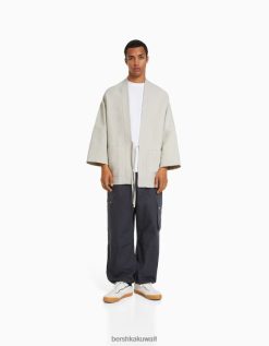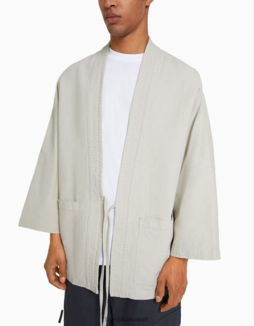 Bershka رجال كيمونو بأكمام طويلة مع جيوب رمل 804X2884 ملابس