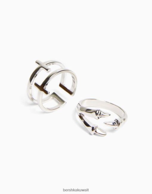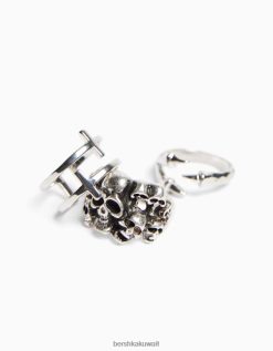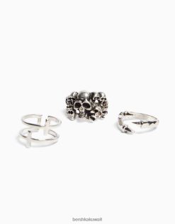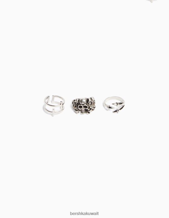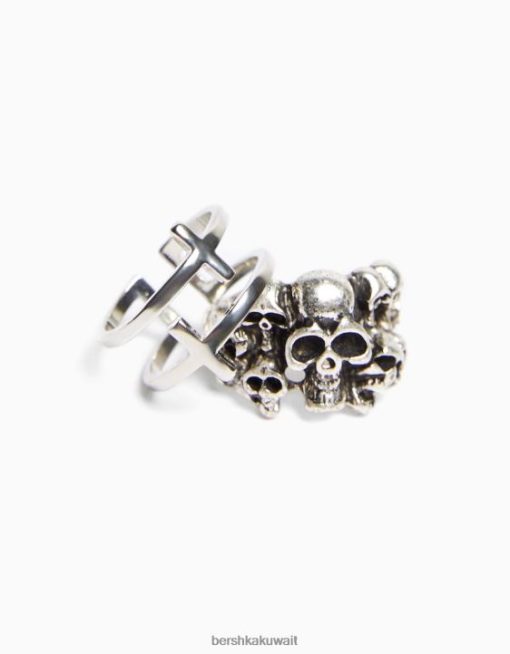 Bershka رجال مجموعة من 3 حلقات الصليب الجمجمة فضة 804X3653 مُكَمِّلات