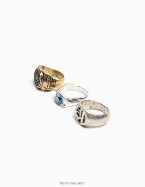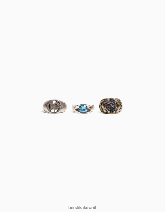 Bershka رجال مجموعة من 3 حلقات حجر الراين فضة 804X3661 مُكَمِّلات