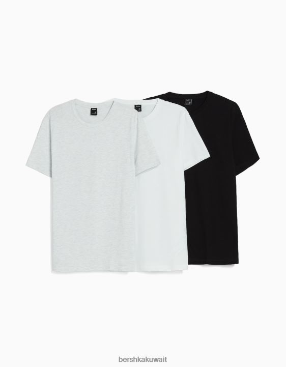 Bershka رجال 3 عبوات من التي شيرتات ذات الأكمام القصيرة ذات المقاس العادي متعدد الألوان 804X2631 ملابس