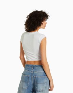 Bershka رجال 90s مخطط كبير كم قصير تي شيرت من البيض 804X2643 ملابس