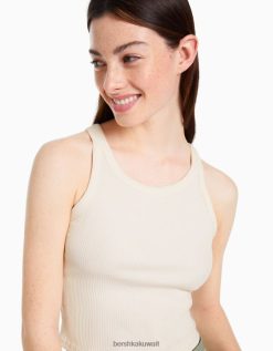 Bershka للجنسين أعلى خزان مضلع أبيض 804X3850 ملابس