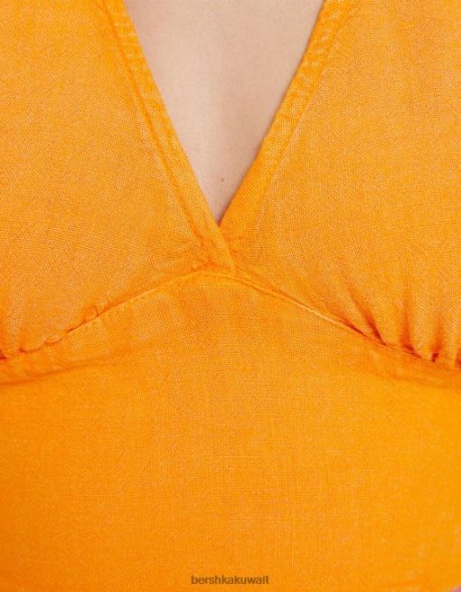 Bershka للجنسين أعلى محصول ريفي من مزيج الكتان البرتقالي 804X3772 ملابس