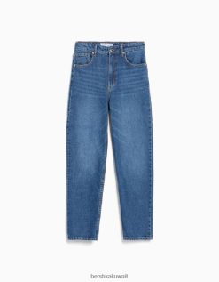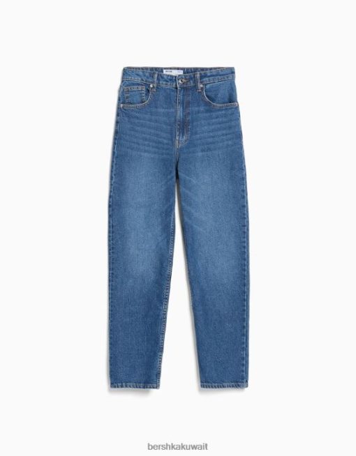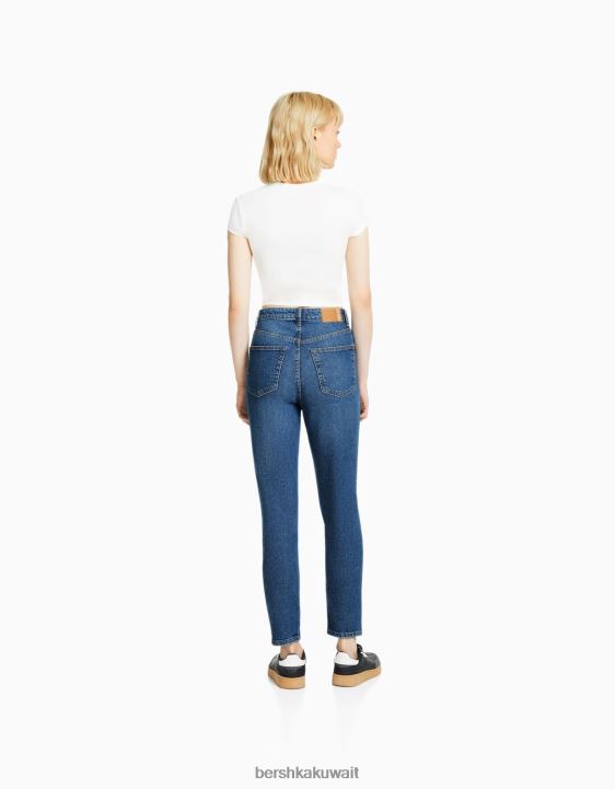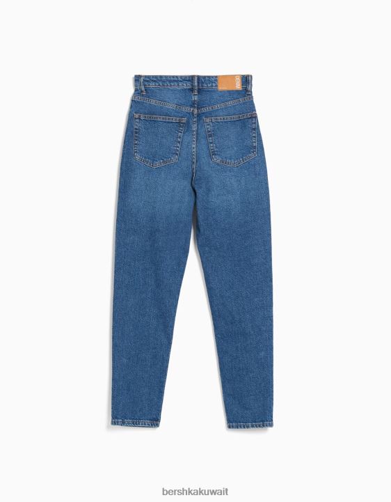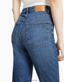 Bershka للجنسين بنطال جينز أمي بقصة ضيقة ومريح أزرق 804X3918 ملابس