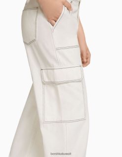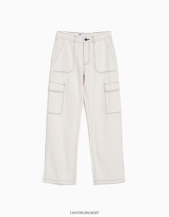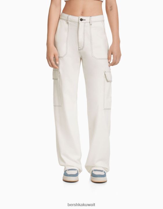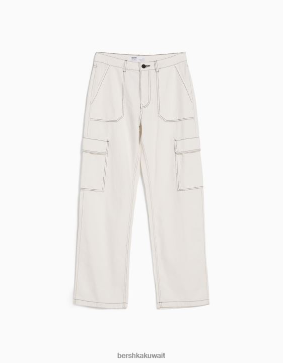 Bershka للجنسين بنطلون جينز بقصة مستقيمة أبيض 804X3989 ملابس