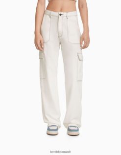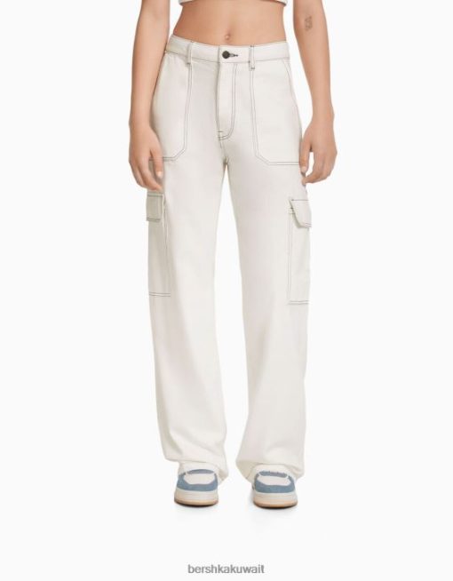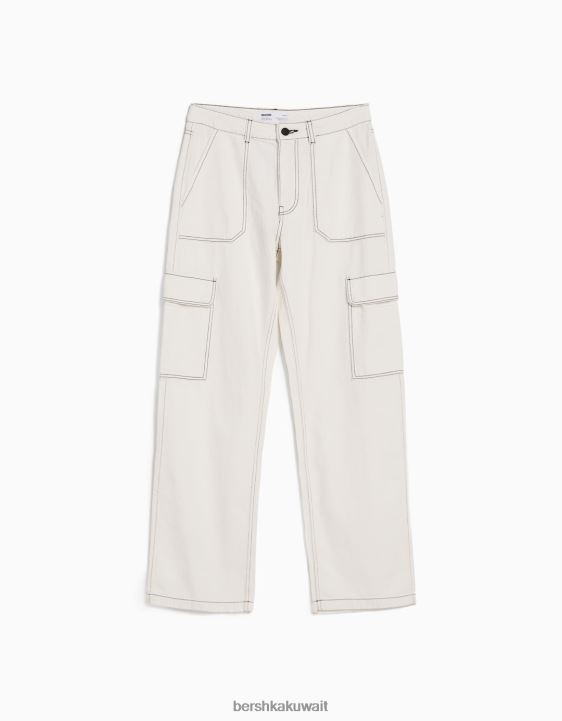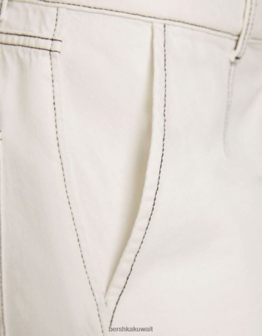 Bershka للجنسين بنطلون جينز بقصة مستقيمة أبيض 804X3993 ملابس