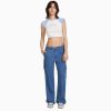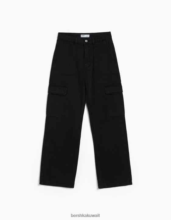 Bershka للجنسين بنطلون جينز بقصة مستقيمة أسود 804X3991 ملابس