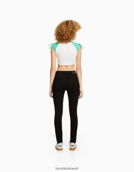 Bershka للجنسين بنطلون جينز ضيق مرتفع أسود 804X3968 ملابس