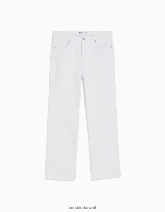 Bershka للجنسين بنطلون جينز واسع أبيض 804X3923 ملابس