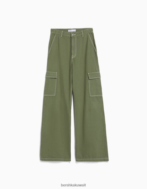 Bershka للجنسين بنطلون جينز واسع الساق الكاكي 804X3998 ملابس