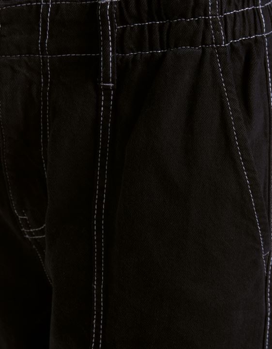 Bershka للجنسين بنطلون جينز واسع الساق متعدد الجيوب أسود 804X4002 ملابس