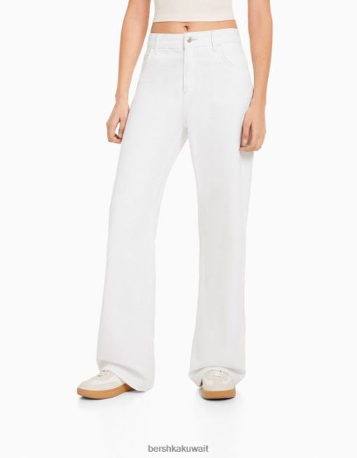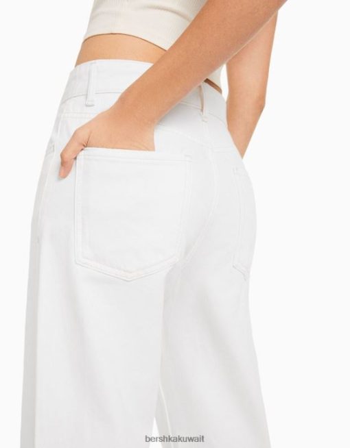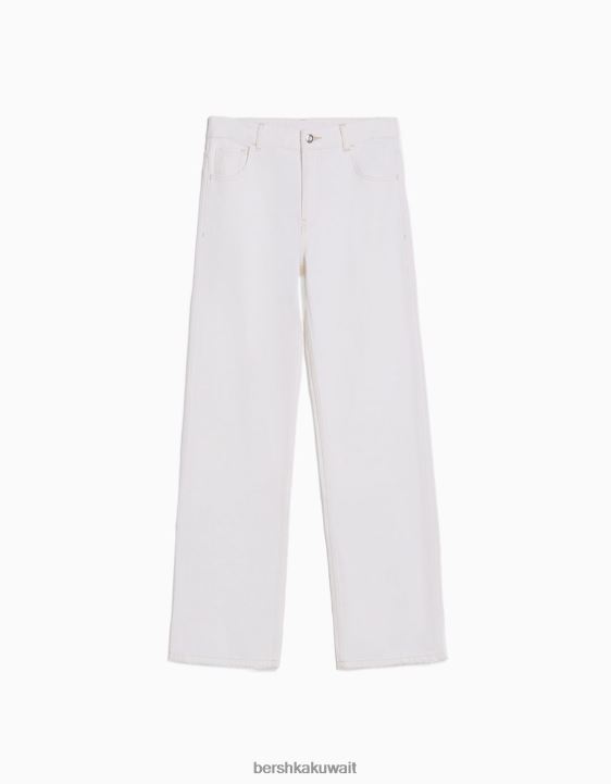 Bershka للجنسين بنطلون جينز واسع الساق من التسعينيات من البيض 804X3977 ملابس