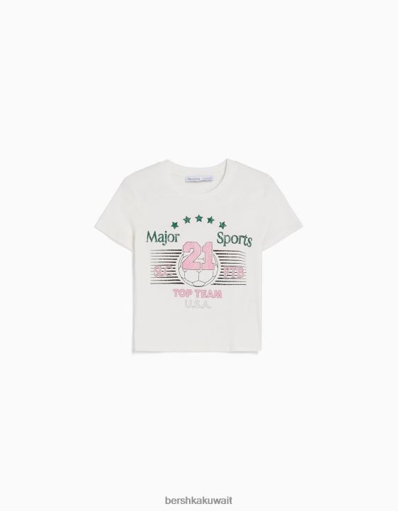 Bershka للجنسين تيشيرت بأكمام قصيرة مع طبعة من البيض 804X3744 ملابس