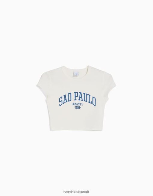 Bershka للجنسين تيشيرت بأكمام قصيرة مع طبعة من البيض 804X3789 ملابس