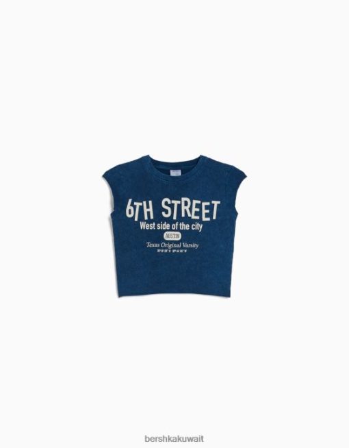 Bershka للجنسين تي شيرت قصير الأكمام مع طباعة أزرق فاتح 804X3739 ملابس