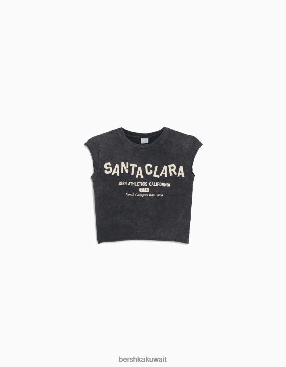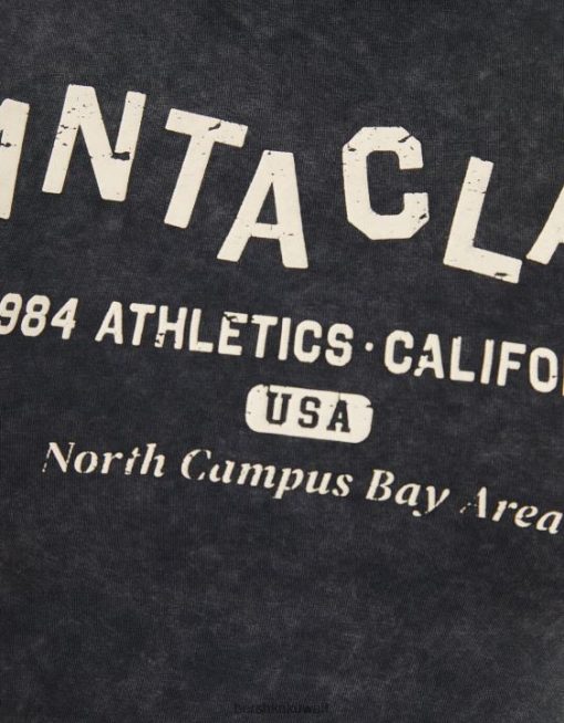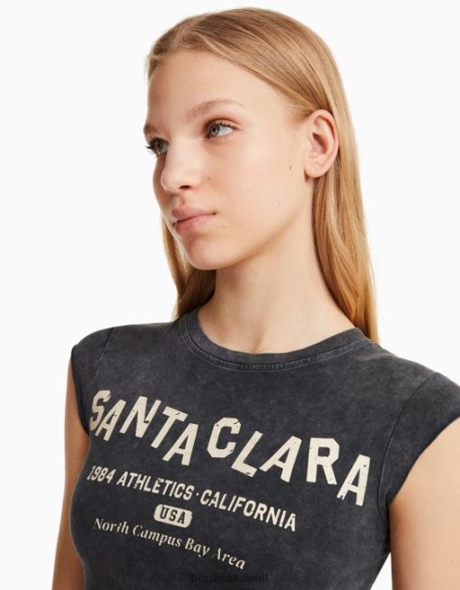 Bershka للجنسين تي شيرت قصير الأكمام مع طباعة رمادي 804X3740 ملابس