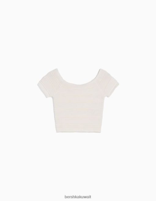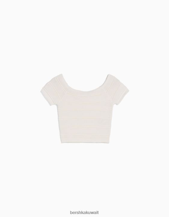 Bershka للجنسين تي شيرت قطني مضلع بأكمام قصيرة كريم 804X3865 ملابس