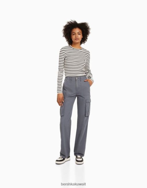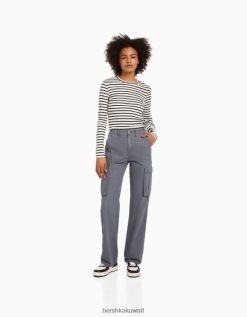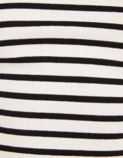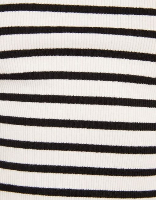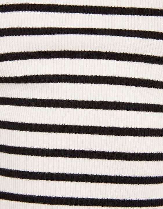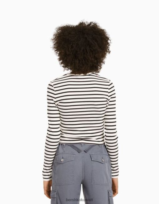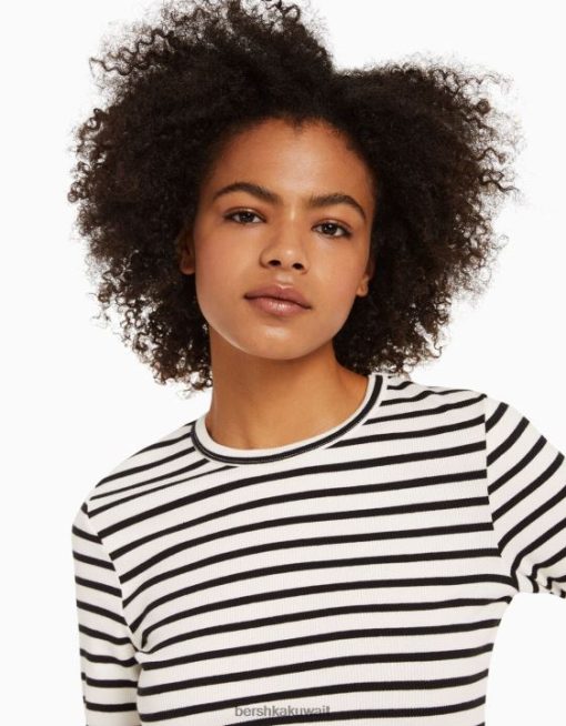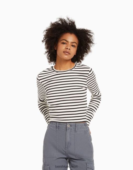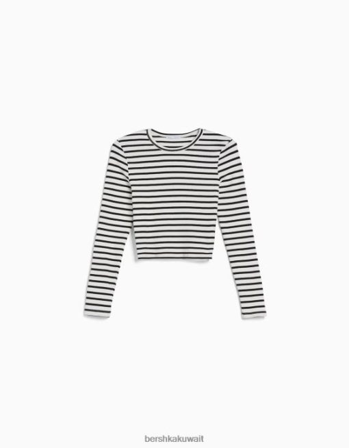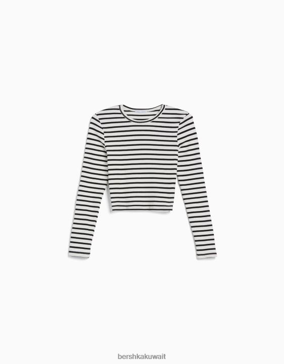 Bershka للجنسين تي شيرت مضلع طويل الأكمام أبيض أسود 804X3804 ملابس