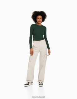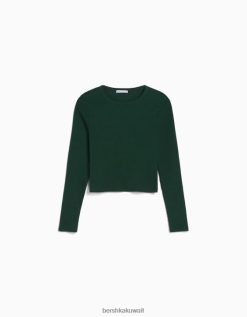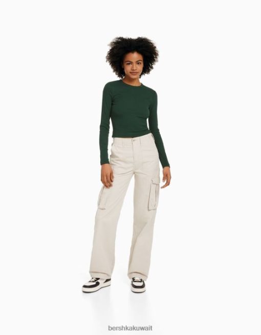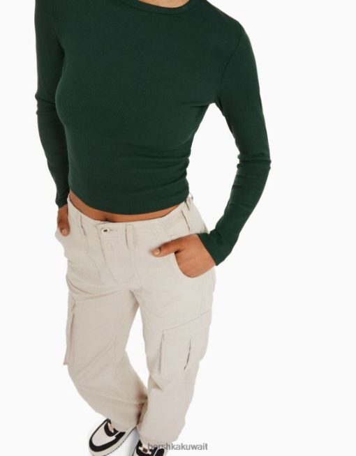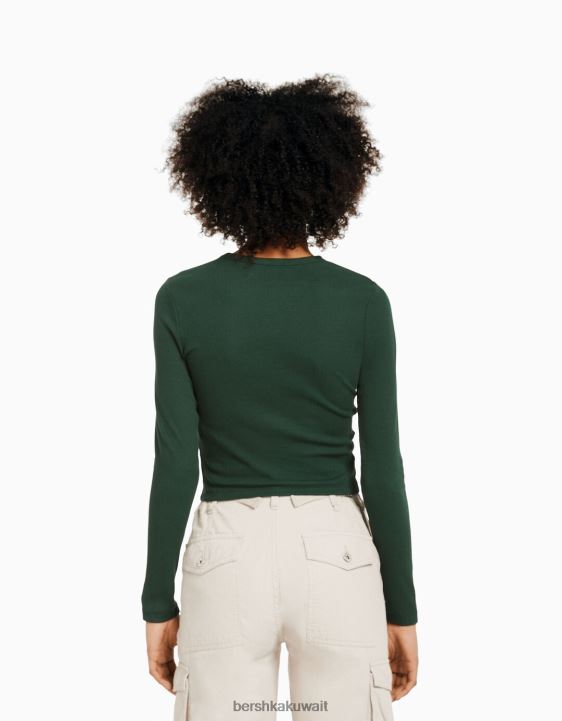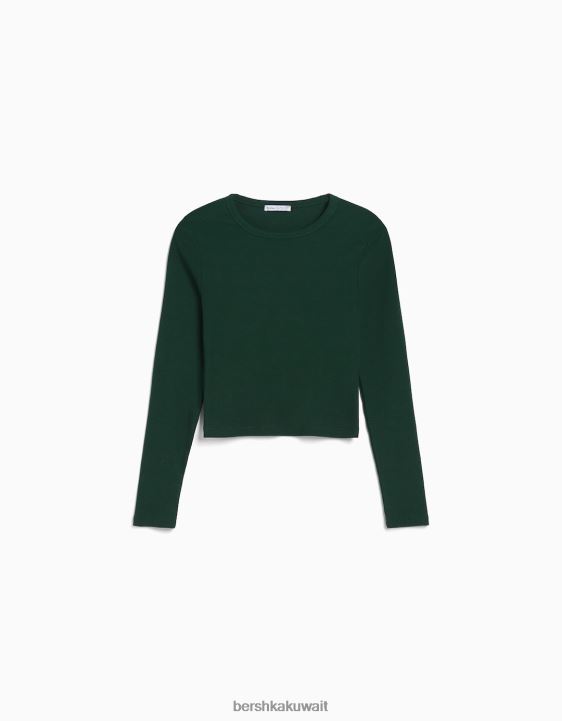 Bershka للجنسين تي شيرت مضلع طويل الأكمام أخضر 804X3864 ملابس