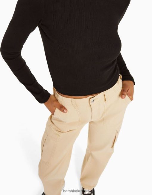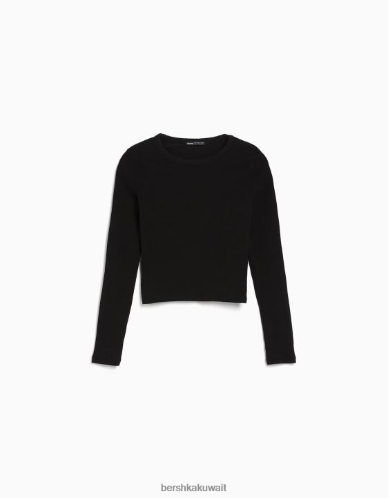 Bershka للجنسين تي شيرت مضلع طويل الأكمام أسود 804X3863 ملابس