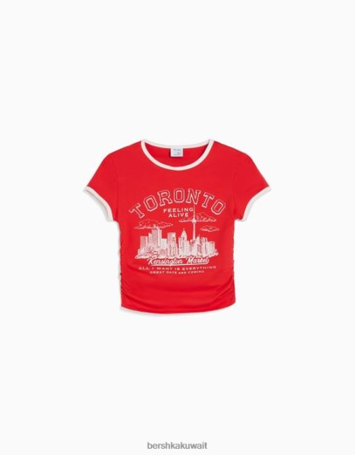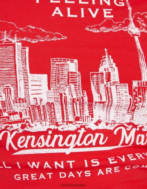 Bershka للجنسين تي شيرت مطبوع بأكمام قصيرة مضلع أحمر 804X3811 ملابس