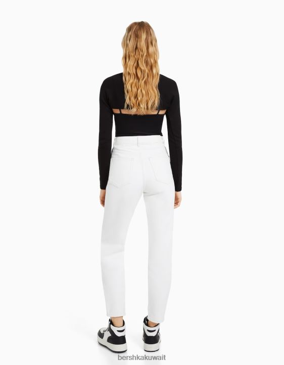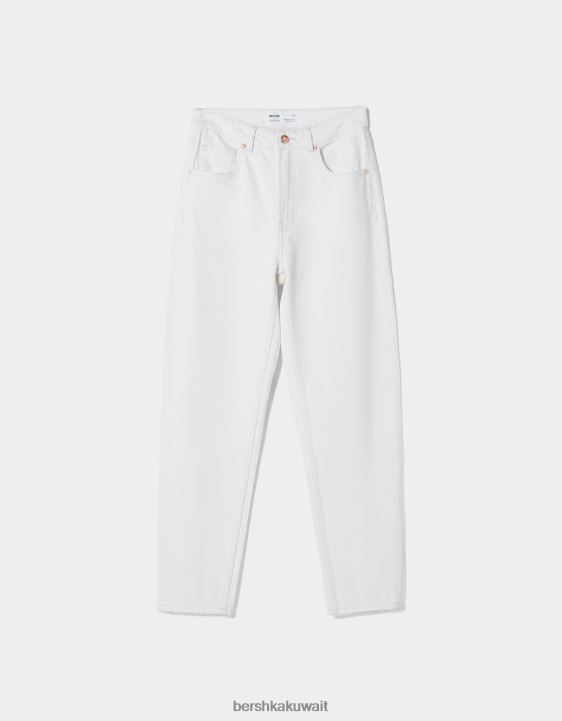 Bershka للجنسين جينز أمي أبيض 804X3940 ملابس