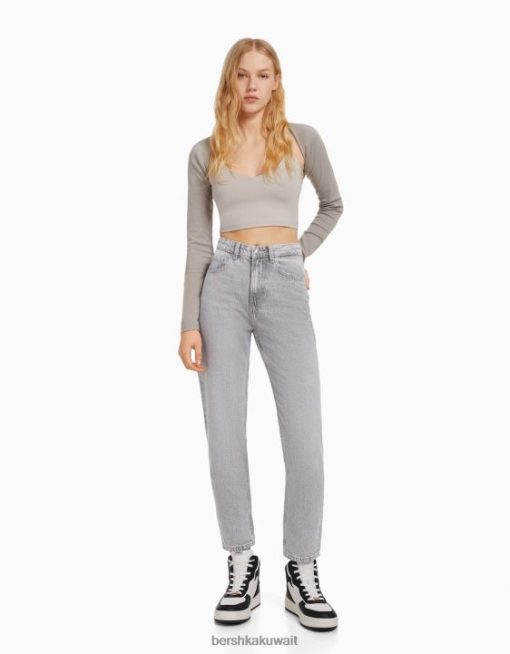 Bershka للجنسين جينز أمي رمادي 804X3937 ملابس