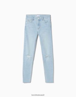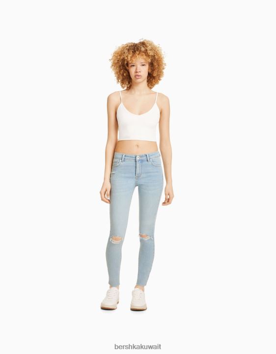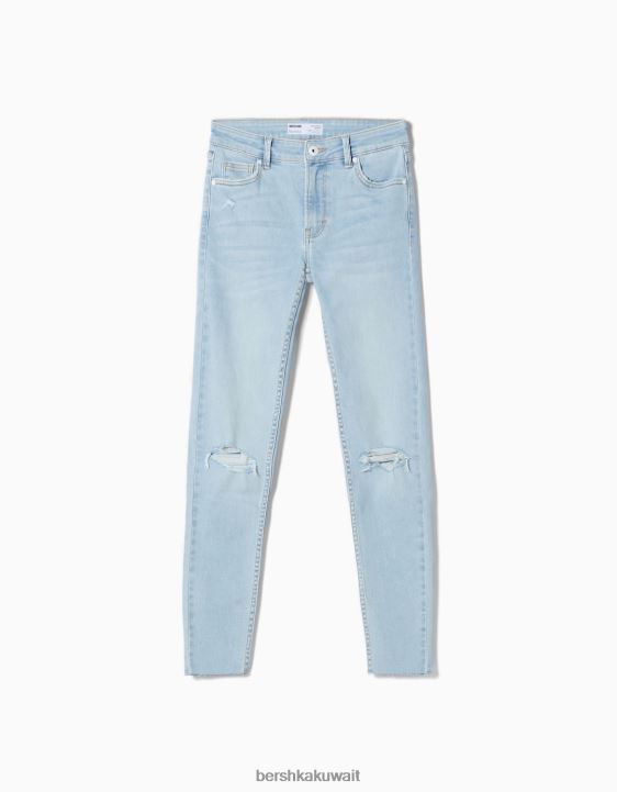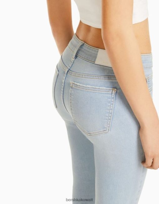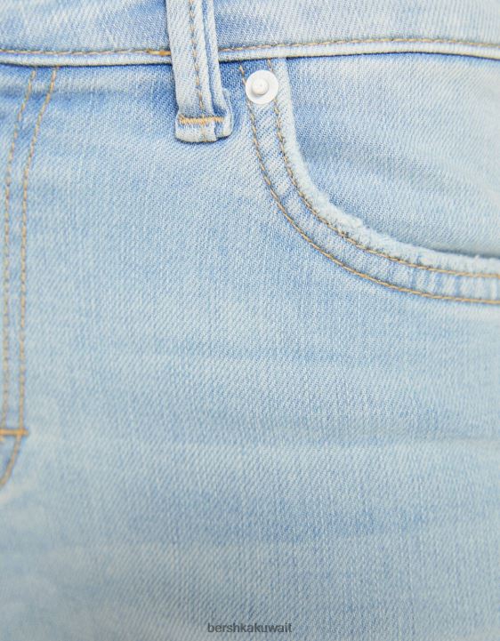 Bershka للجنسين جينز بقصة ضيقة منخفضة الارتفاع أزرق فاتح 804X3973 ملابس