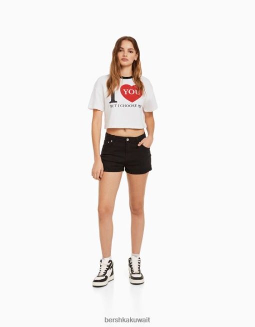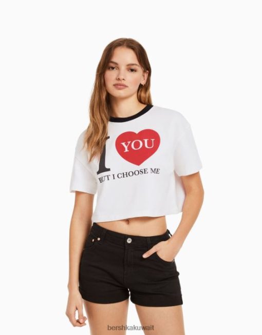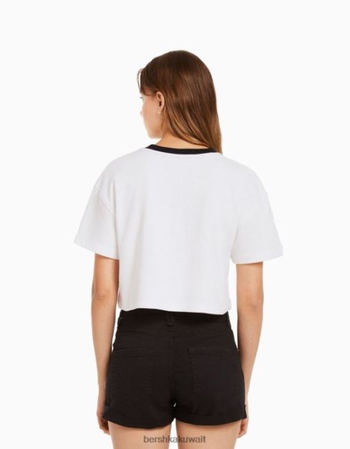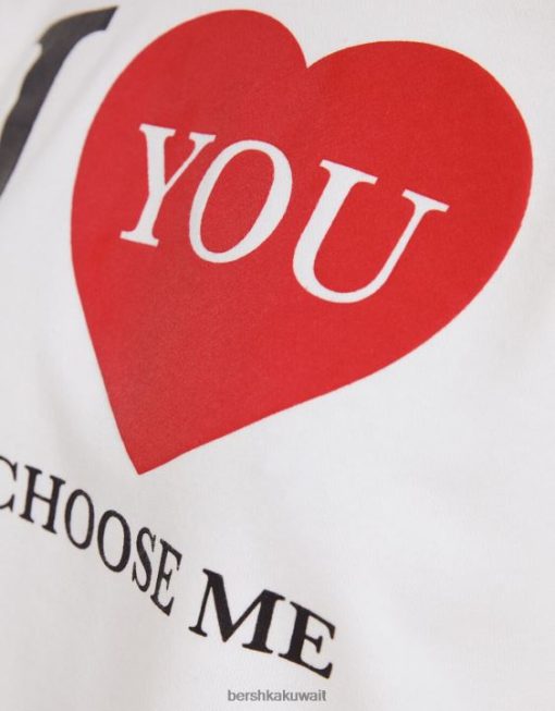 Bershka للجنسين سويت شيرت قصير الأكمام مطبوع كريم 804X4136 ملابس
