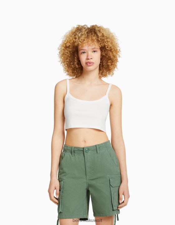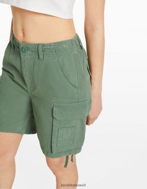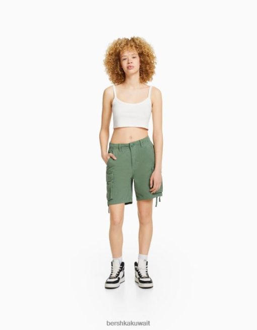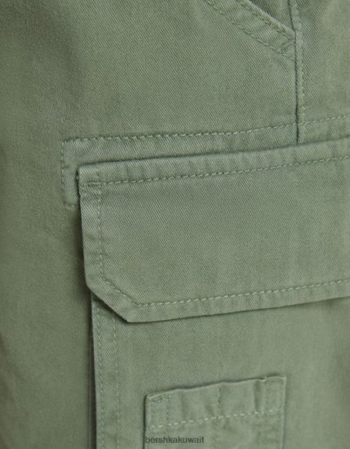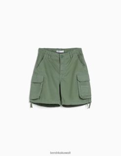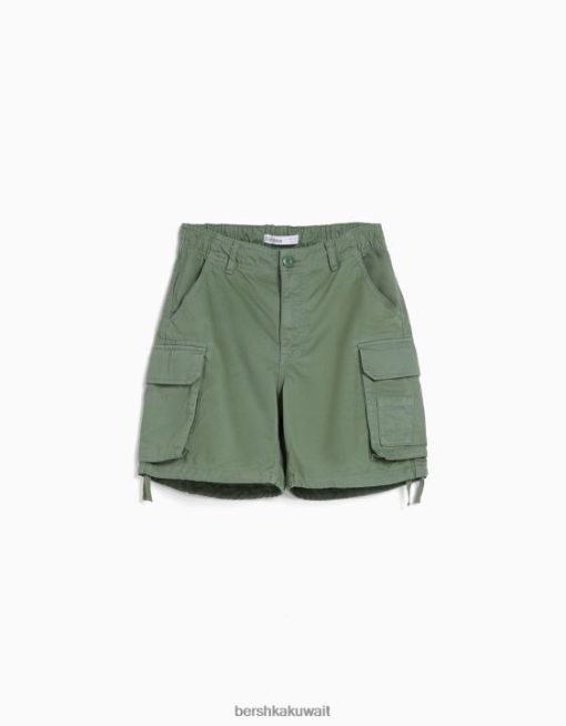 Bershka للجنسين شورت برمودا للشحن من القطن مع أحزمة الكاكي 804X4024 ملابس